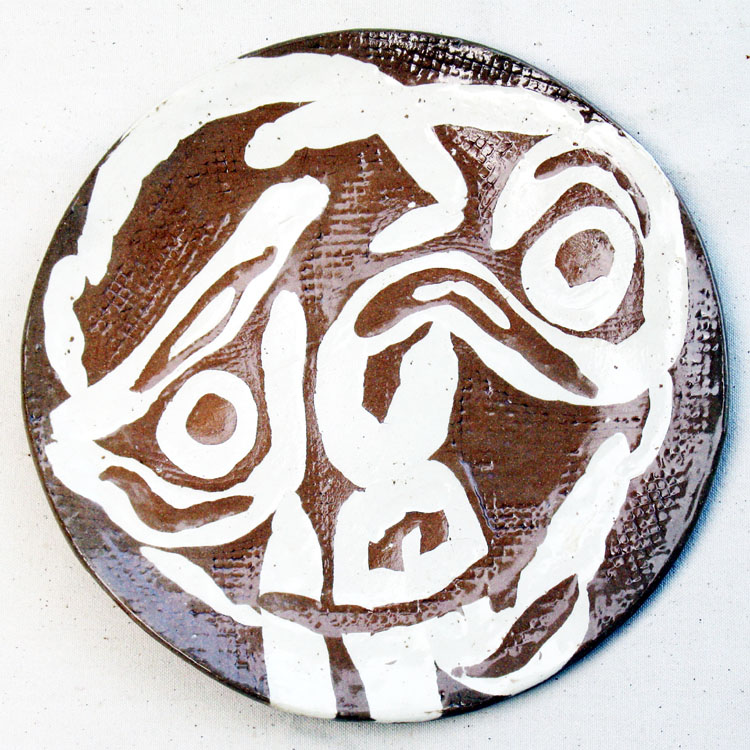 # 0109. Plate. Mask. Handbuilt stoneware, d. 11 in, 1998