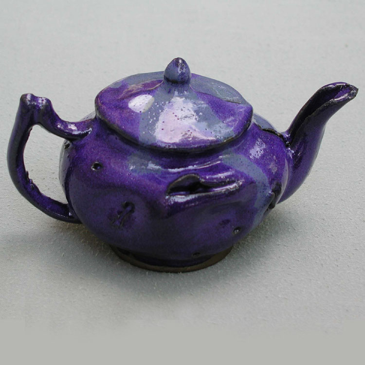 # 0343. Teapot. Stoneware slip-cast, altered, h. 4.5 in, 2002