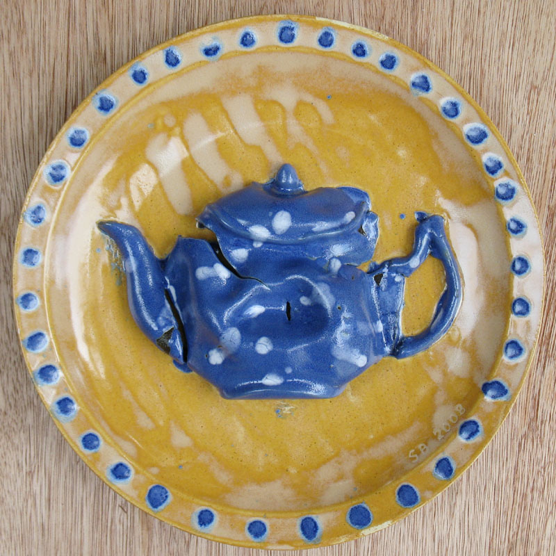 # 0474. Plate. Teapot. Thrown and slip-cast stoneware, d. 10.5 in, 2008