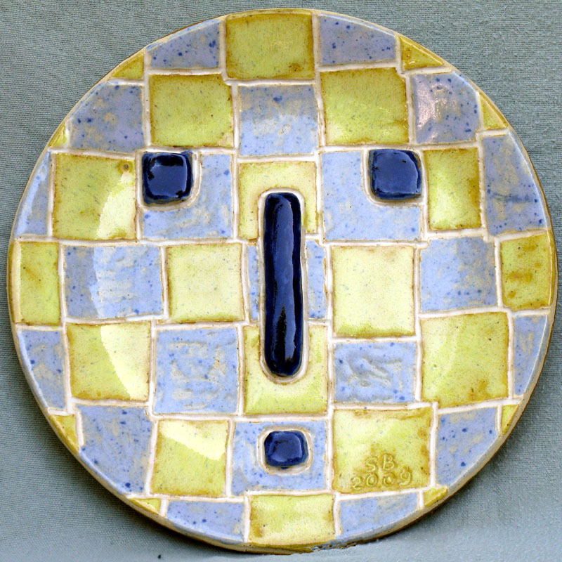 # 0533. Saucer. Mask. Thrown and altered stoneware, d. 7.5 in, 2009