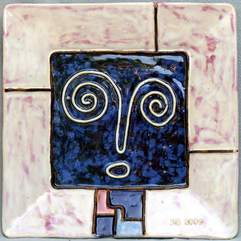 # 0546. Plate. Mask. Thrown and altered stoneware, 9.5 x 9.5 in, 2009