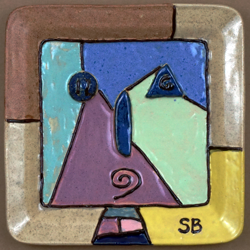 # 0725. Plate. Mask. Thrown and altered stoneware, 9.5 x 9.5 in, 2015