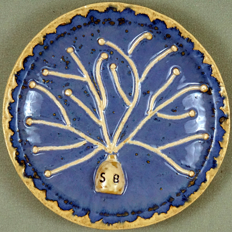 # 0824. Plate. Flowers. Thrown and altered stoneware, d. 10.5 in, 2017