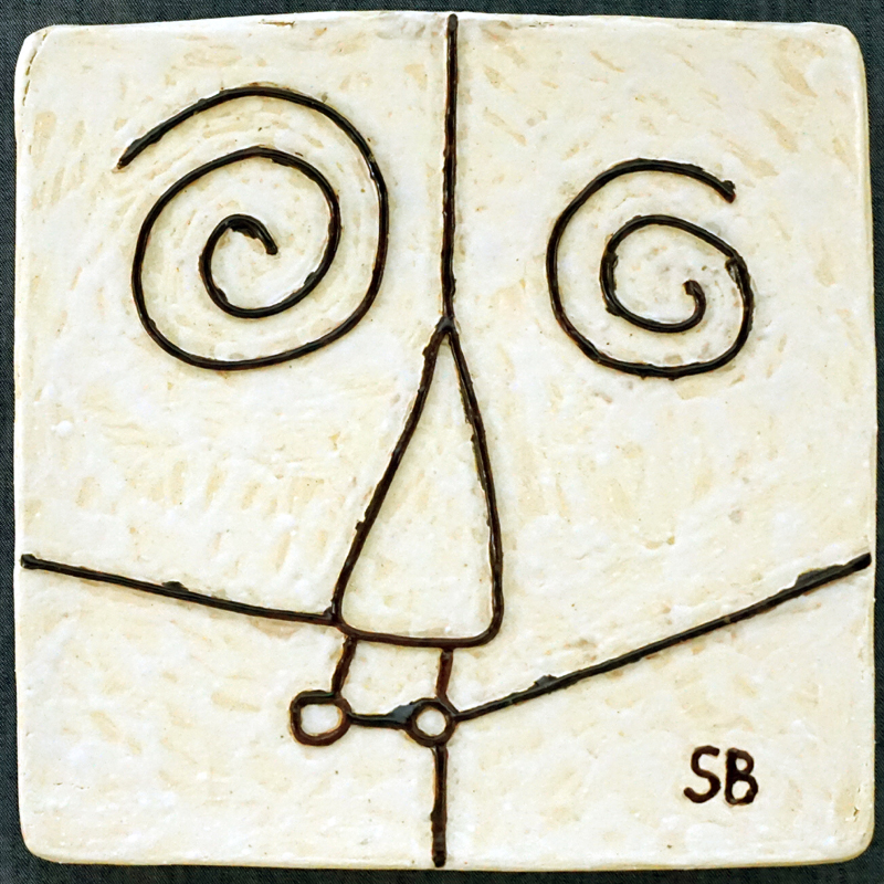 # 0845. Plate. Mask. Thrown stoneware, 9 x 9 in, 2018