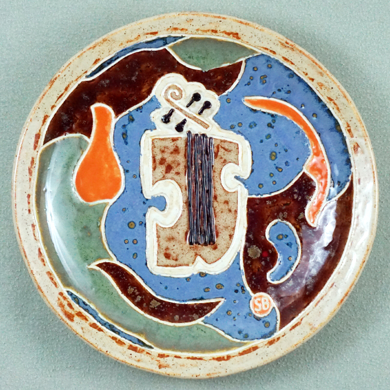 # 0977. Plate. Violin. Thrown and altered stoneware, d. 10.5 in, 2021