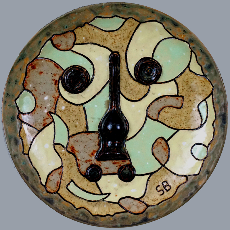 # 1017. Plate. Mask. Thrown stoneware, d. 10.5 in, 2022