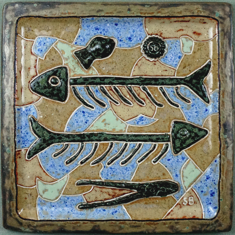 # 1018. Platter. Herrings. Thrown stoneware, 13 x 13 in, 2022