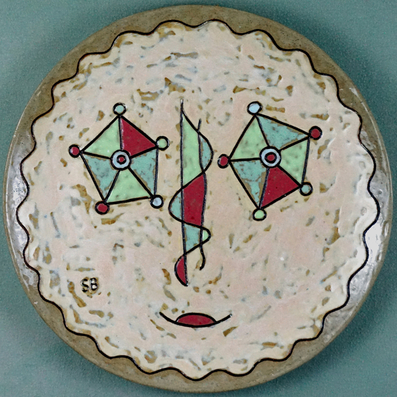 # 1089. Plate. Mask. Thrown stoneware, d. 14.5 in, 2023