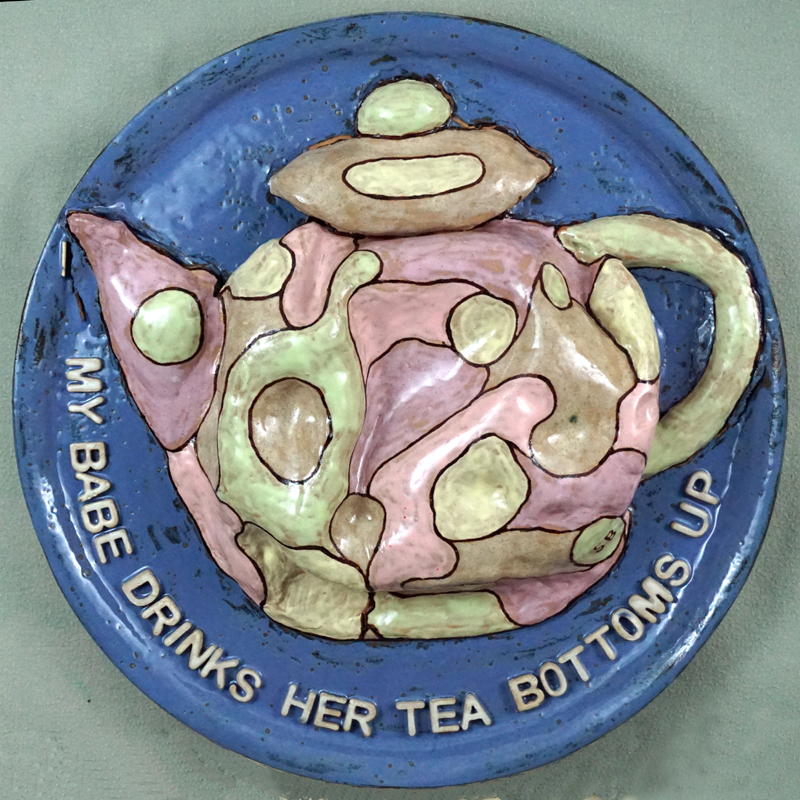 # 0993. Platter. Teapot. Thrown and altered stoneware, d. 18 in, 2021