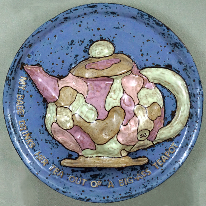 # 1004. Platter. Teapot. Thrown and altered stoneware, d. 18 in, 2021