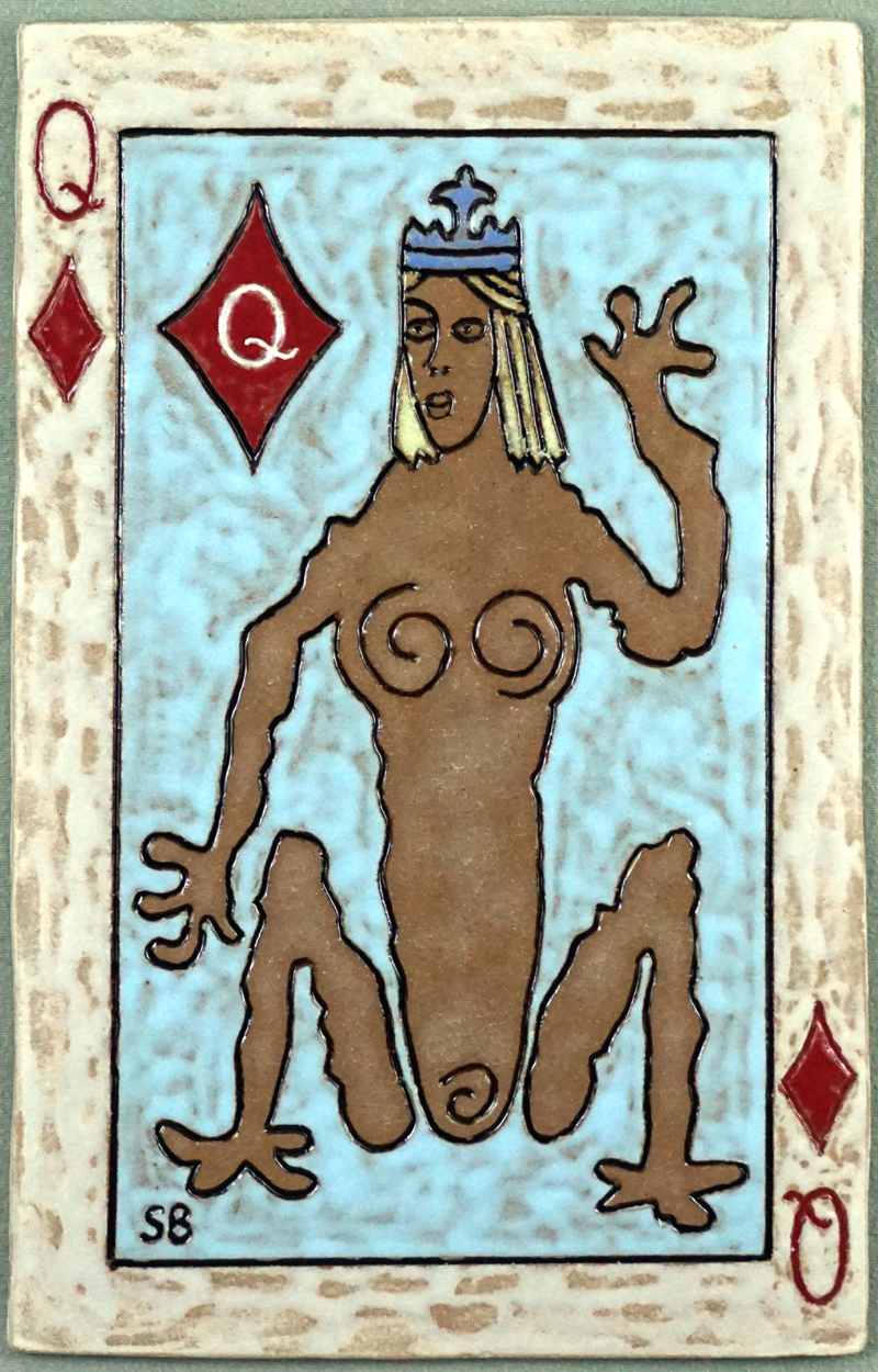 # 0990. Queen of Diamonds. Handbuilt stoneware, 15.5 x 10.5 in., 2021