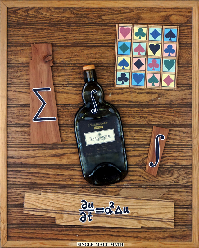 Single Malt Math (2013). Mixed media, 24 x 19 in.