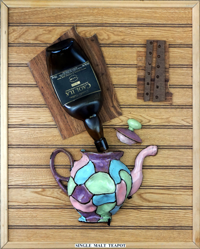 Single Malt Teapot (2015). Mixed media, 24 x 19 in.