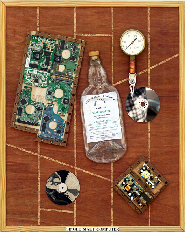 Single Malt Computer (2021). Mixed media, 24 x 19 in.