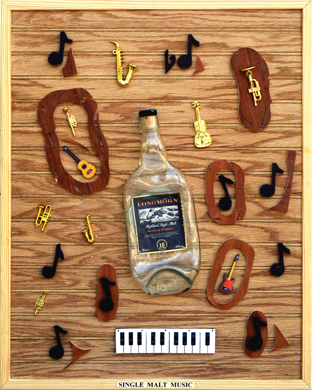 Single Malt Music (2023). Mixed Media, 24 x 19 in.